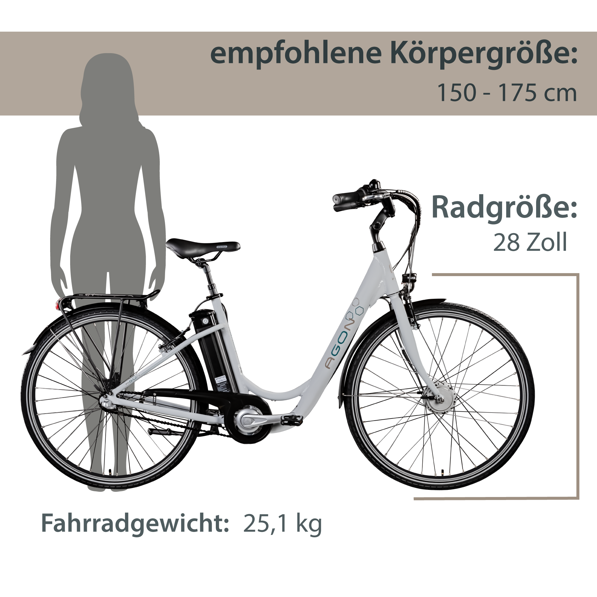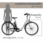 Wir empfehlen das Fahrrad für Personen mit einer Körperhöhe zwischen 150 und 175 cm.