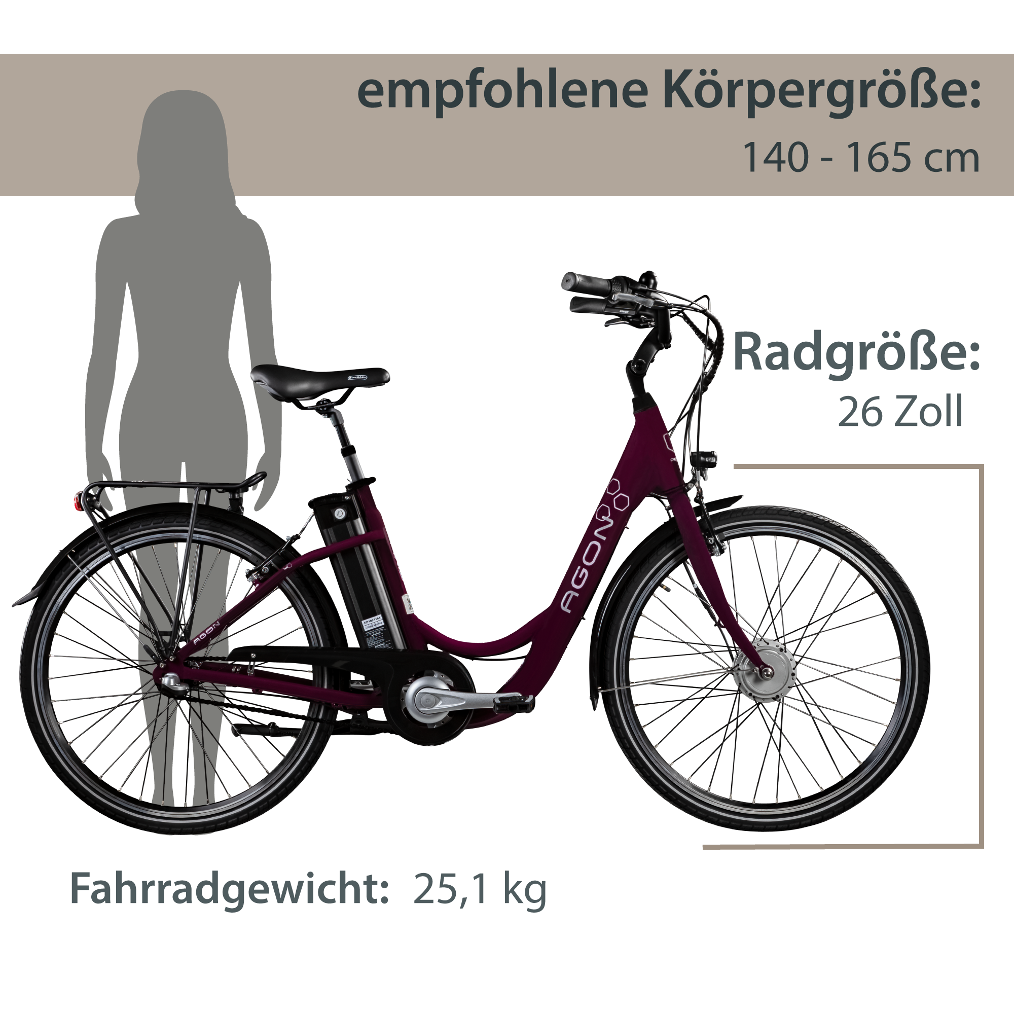Wir empfehlen das Fahrrad für Personen mit einer Körperhöhe zwischen 140 und 165 cm.